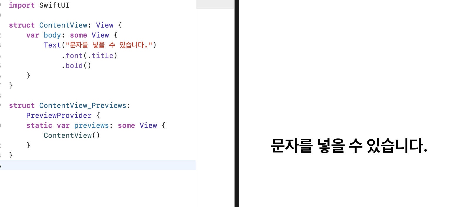 Text("문자를 넣을 수 있습니다.")