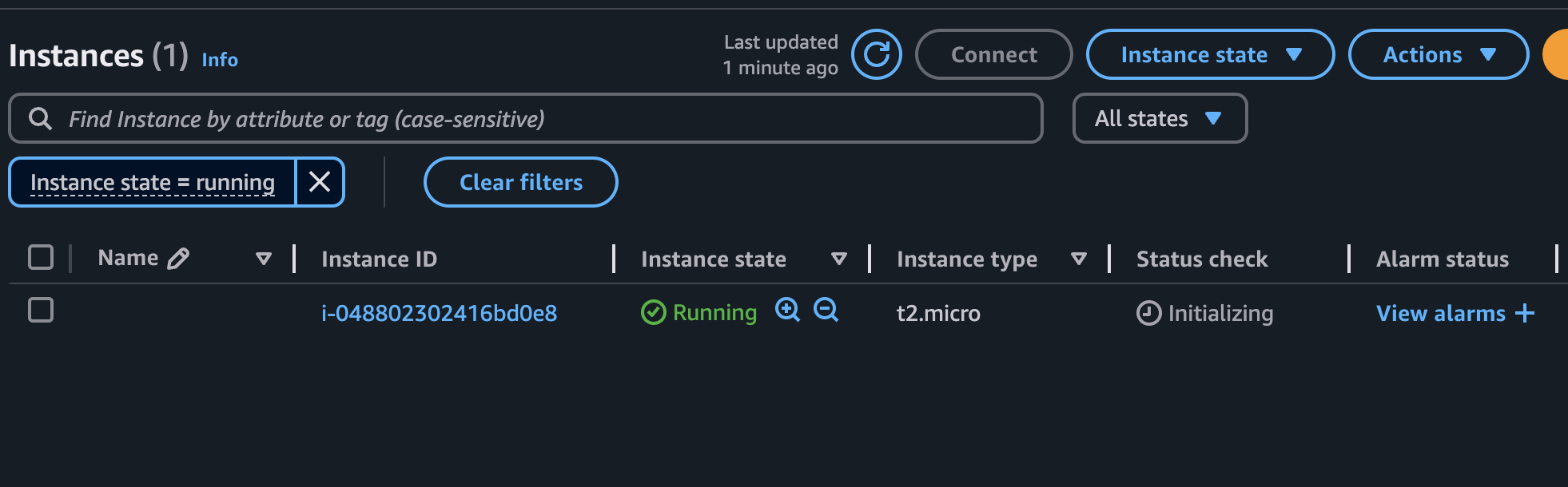 완료가 된 후 Dashboard 에 들어가면 인스턴스가 실행되는 것을 알 수 있습니다.