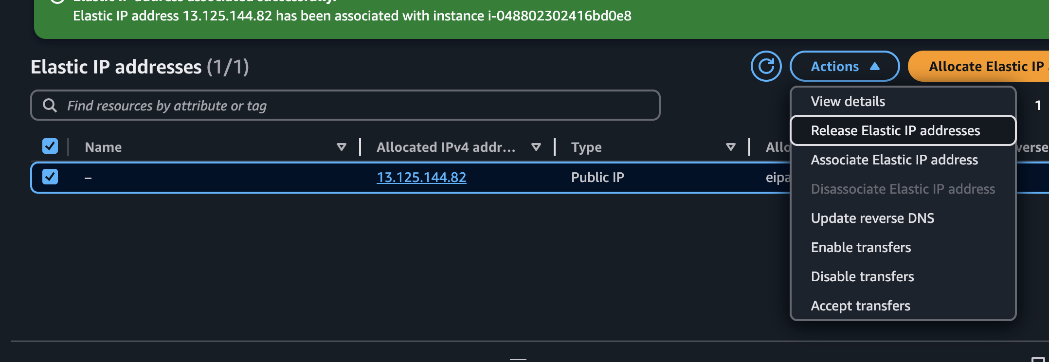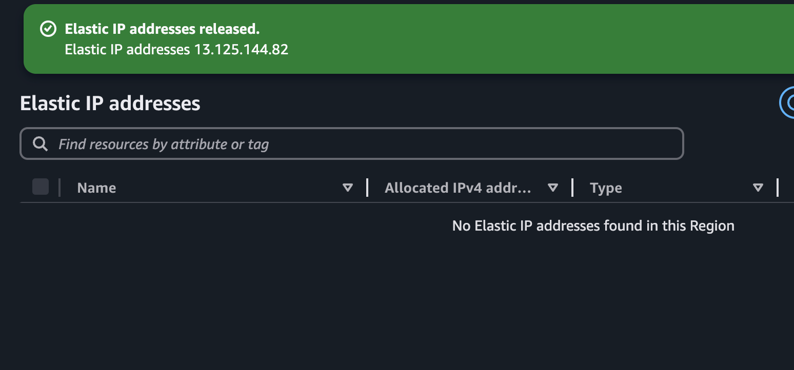여기서 중요한 것은 탄력적 IP를 사용중이라면 비용이 계속 발생하기 때문에 이 부분도 제거해야 합니다.