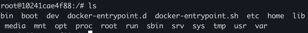 이렇게 실행중인 컨테이너 내부에 접속을 하는 방법입니다.