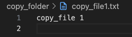 copy_foler 가 보이고 해당 폴더로 들어가면 하위에 두 개의 파일이 있었던 것 처럼 보입니다.