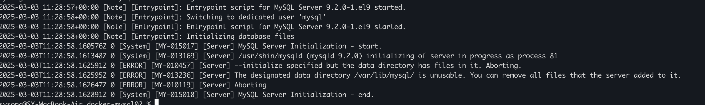 - 새로운 이름을 가진 docker-mysql02 를 생성