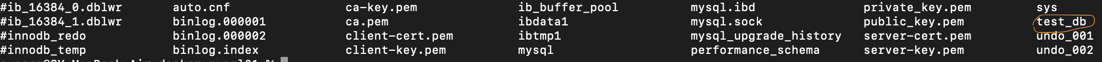test_db 라고 생성한 후 호스트에서 만든 폴더 내에서도 변화가 있는 것을 알 수 있습니다.