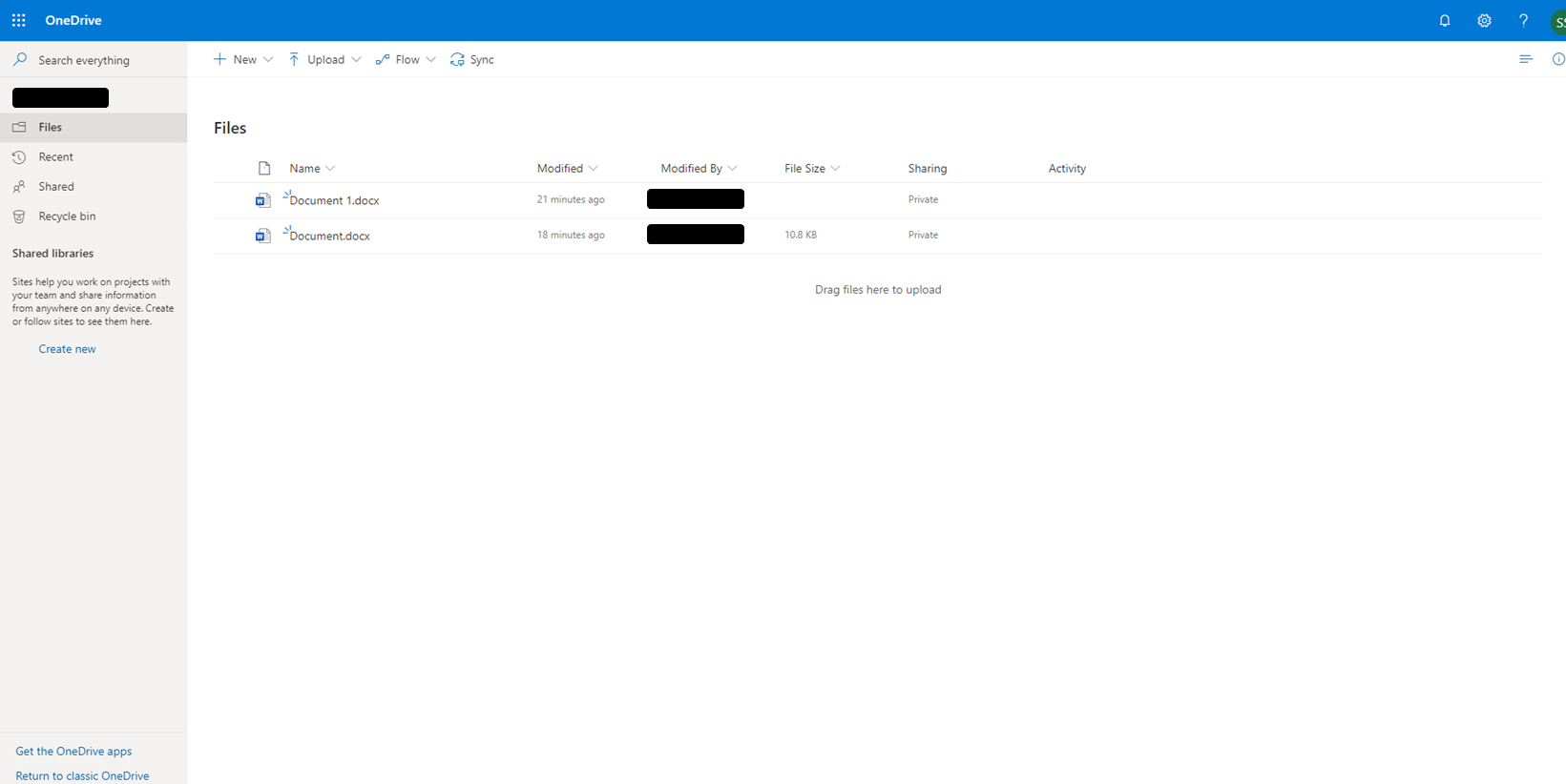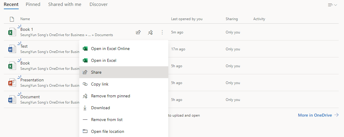 그럼 다시 제일 처음 화면으로 들어가보겠습니다. Documents 아래에 OneDrive 및 SharePoint가 생긴 것을 볼 수 있습니다.