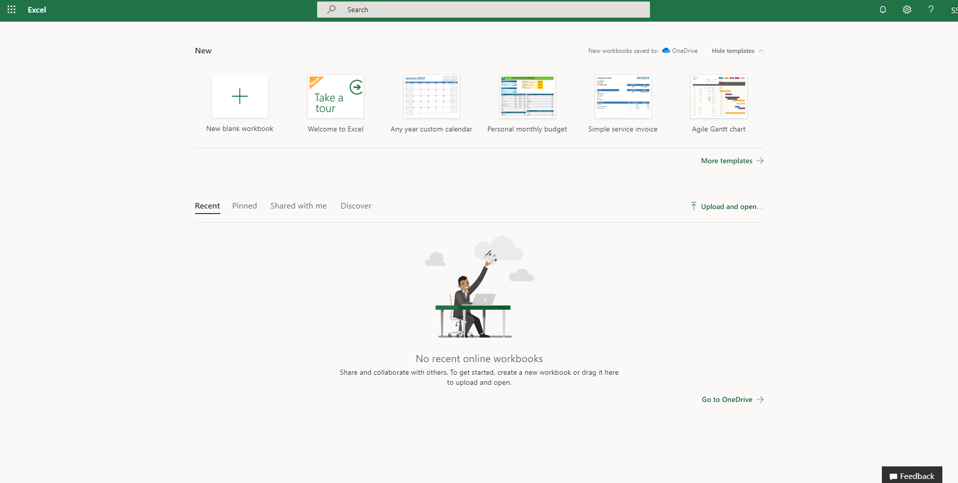 그럼 홈으로 돌아가기 위한 Office 365 -> 버튼이 있는 이유를 이제야 알겠습니다. 해당 버튼을 누르면 처음 화면으로 돌아가게 되지만 새창을 열게 됩니다. 파일이 하나 생성된 이후 첫 화면은 갑자기 많이 변경되었습니다. 먼저 왼쪽 메뉴를 다시 눌러보면 New 버튼 밑에 내가 작업한 히스토리를 볼 수 있습니다. 또한 보이지 않았던 More docs가 보입니다.