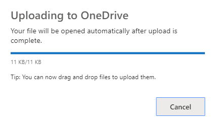 Open을 누르게 되면 아래와 같이 OneDrive로 업로드가 되고 있다는 화면이 나오게 됩니다.