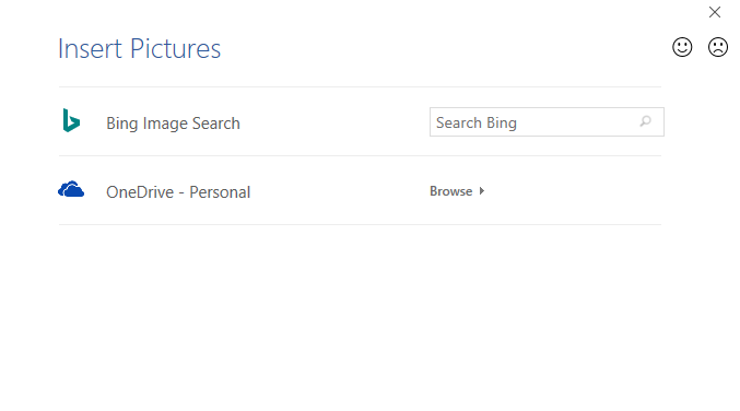 다른 아이콘인 Online Pictures는 온라인에서 사진을 찾는 기능으로 Bing 브라우저에서 검색된 결과를 보여줍니다. MS Office 365는 검색란 아래에서 알파벳 순서로 미리 검색된 사진을 볼 수 있습니다. 하지만 MS Word 2016은 미리 검색된 사진은 없고 대신 OneDrive 에 접속하여 찾을 수 있는 기능이 있습니다.