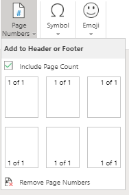 Page Number는 Footer나 Header에 주로 기록하기 때문에 Header와 Footer와 같은 tab에 있습니다.