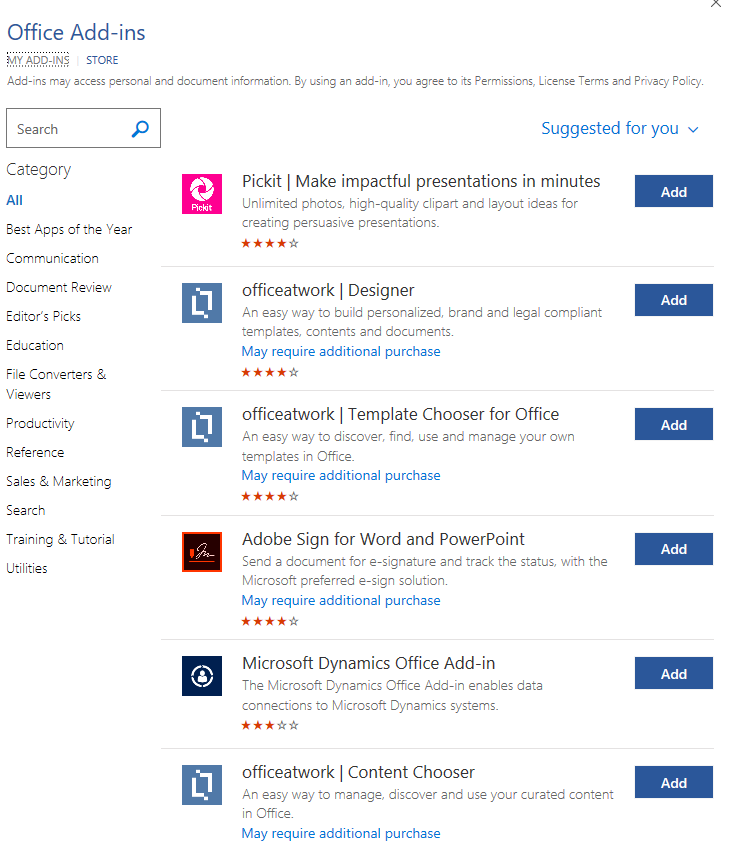 그럼 Office Add-ins를 누르면 아래와 같은 화면이 나옵니다. 해당 기능은 word라는 프로그램을 잘 사용할 수 있도록 도와주는 프로그램으로 생각하시면 될 거 같습니다.