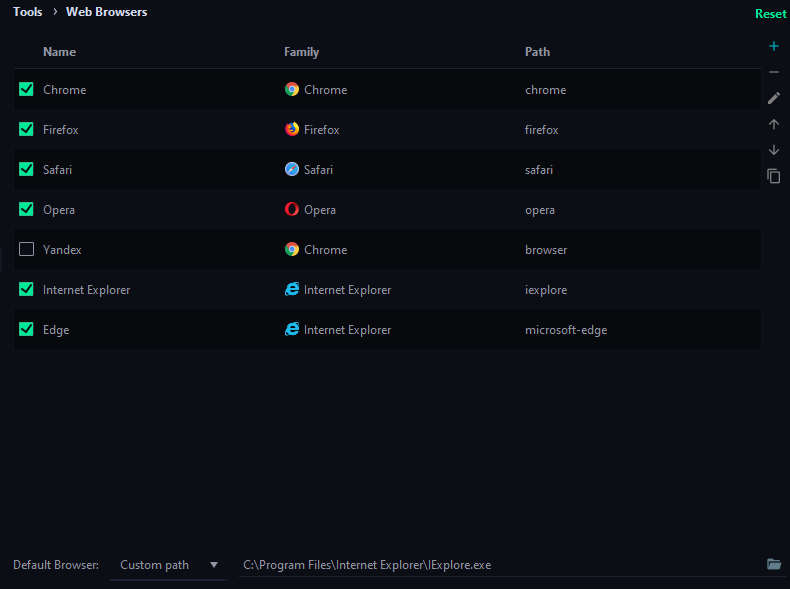 File -> Settings -> Tools -> Web Browers